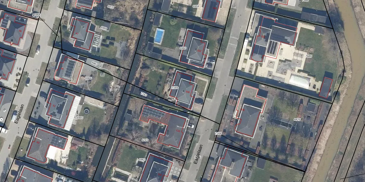Eaglelaan 106 is gelegen op kadastraal perceel LLS00M7169. Deze kadastrale aanduiding is uniek en wordt gebruikt door het Kadaster om eigendomsrechten en andere zakelijke rechten vast te leggen. Het perceel maakt onderdeel uit van de kadastrale gemeente Lelystad.