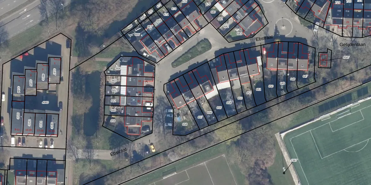 Het perceel waarop Ebstraat 13 staat heeft een oppervlakte van 166 m². Dit is een middelgroot perceel. De perceeloppervlakte wordt geregistreerd door het Kadaster. Gedetailleerde informatie over de maten van dit perceel kunt u vinden in het rapport Kadastrale kaart met maatvoering van Ebstraat 13.