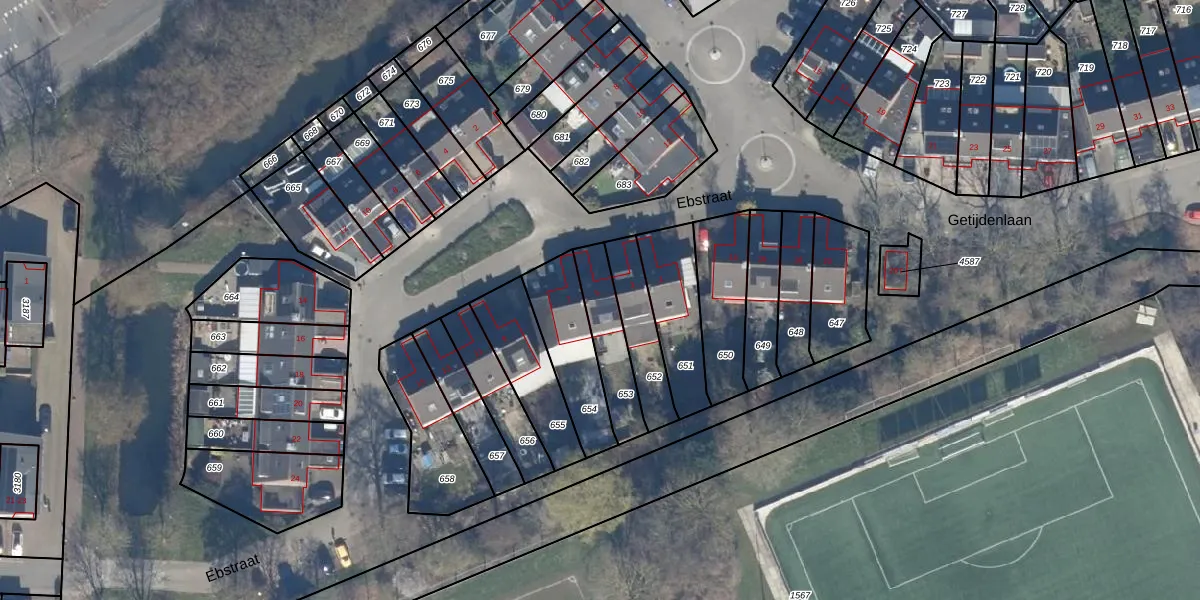 Het perceel waarop Ebstraat 5 staat heeft een oppervlakte van 178 m². Dit is een middelgroot perceel. De perceeloppervlakte wordt geregistreerd door het Kadaster. Gedetailleerde informatie over de maten van dit perceel kunt u vinden in het rapport Kadastrale kaart met maatvoering van Ebstraat 5.