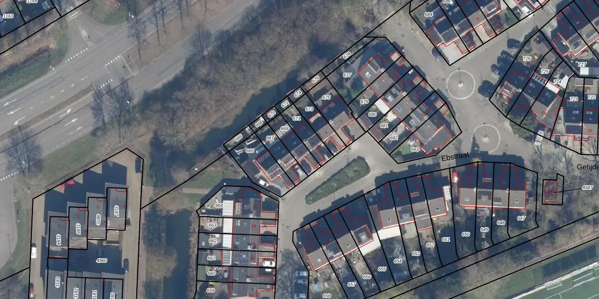 Het perceel waarop Ebstraat 8 staat heeft een oppervlakte van 121 m². Dit is een middelgroot perceel. De perceeloppervlakte wordt geregistreerd door het Kadaster. Gedetailleerde informatie over de maten van dit perceel kunt u vinden in het rapport Kadastrale kaart met maatvoering van Ebstraat 8.