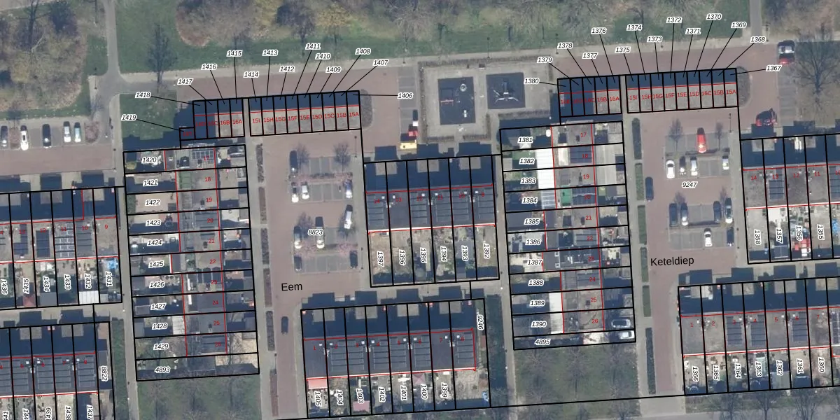 Het perceel waarop Eem 12 staat heeft een oppervlakte van 148 m². Dit is een middelgroot perceel. De perceeloppervlakte wordt geregistreerd door het Kadaster. Gedetailleerde informatie over de maten van dit perceel kunt u vinden in het rapport Kadastrale kaart met maatvoering van Eem 12.