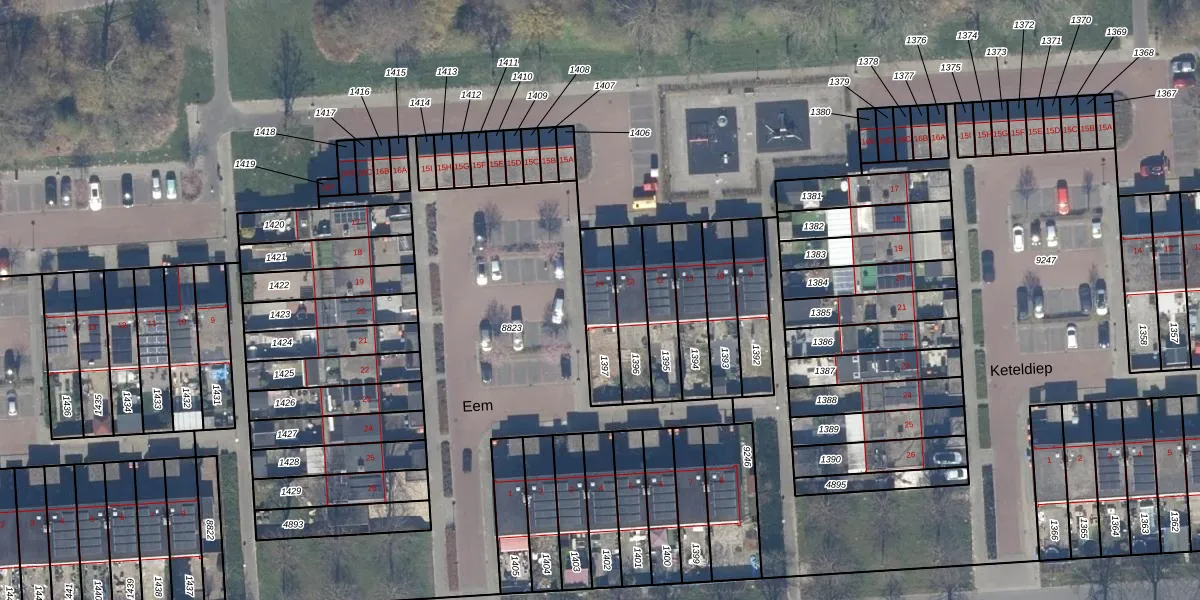 Het perceel waarop Eem 14 staat heeft een oppervlakte van 157 m². Dit is een middelgroot perceel. De perceeloppervlakte wordt geregistreerd door het Kadaster. Gedetailleerde informatie over de maten van dit perceel kunt u vinden in het rapport Kadastrale kaart met maatvoering van Eem 14.