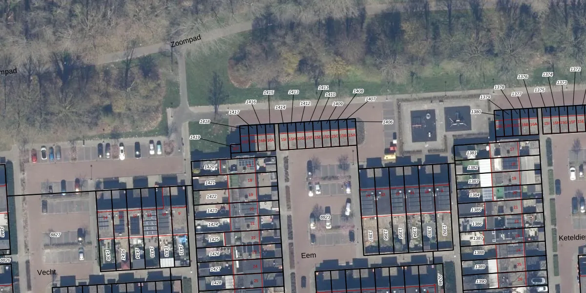 Gebruik de zoekbalk of klik op een perceel voor informatie over de adressen binnen dit perceel.