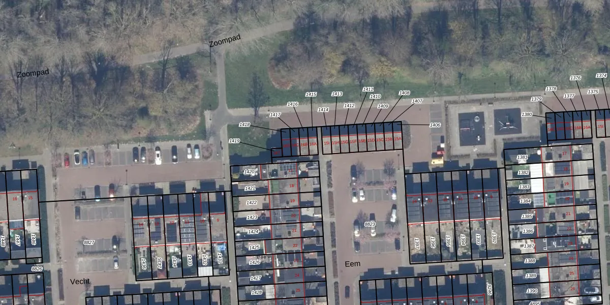 Gebruik de zoekbalk of klik op een perceel voor informatie over de adressen binnen dit perceel.