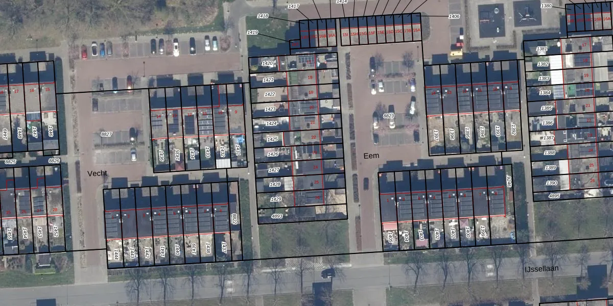 Het perceel waarop Eem 23 staat heeft een oppervlakte van 143 m². Dit is een middelgroot perceel. De perceeloppervlakte wordt geregistreerd door het Kadaster. Gedetailleerde informatie over de maten van dit perceel kunt u vinden in het rapport Kadastrale kaart met maatvoering van Eem 23.