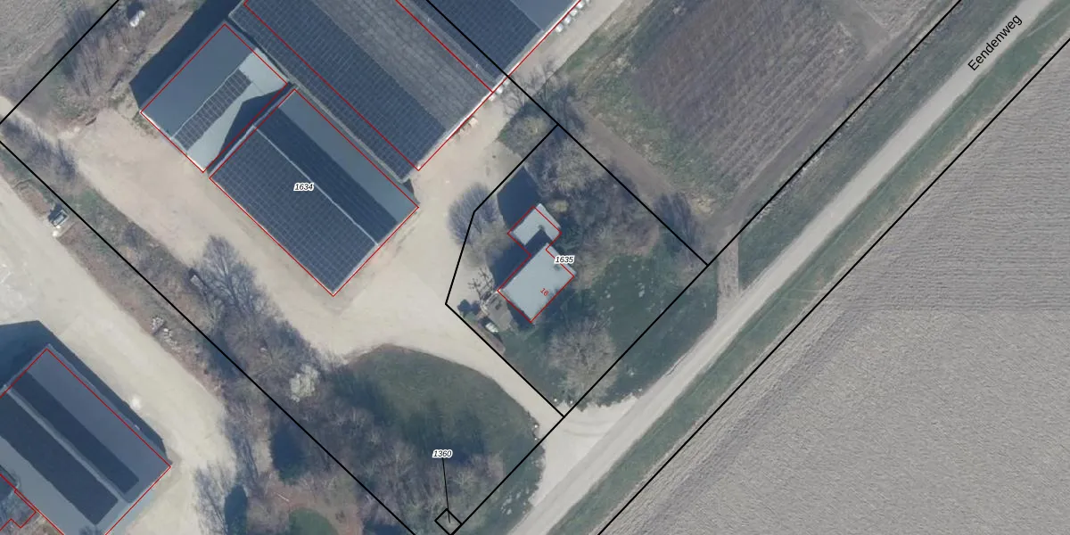 Eendenweg 16 is gelegen op kadastraal perceel LLS00L1635. Deze kadastrale aanduiding is uniek en wordt gebruikt door het Kadaster om eigendomsrechten en andere zakelijke rechten vast te leggen. Het perceel maakt onderdeel uit van de kadastrale gemeente Lelystad.