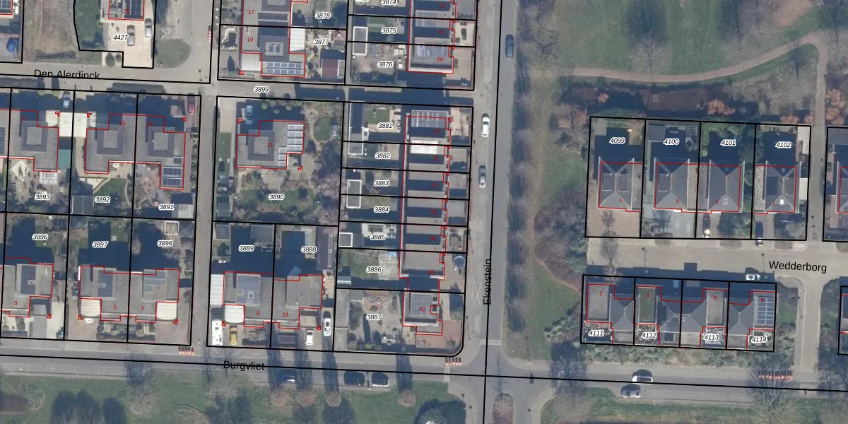 Gebruik de zoekbalk of klik op een perceel voor informatie over de adressen binnen dit perceel.