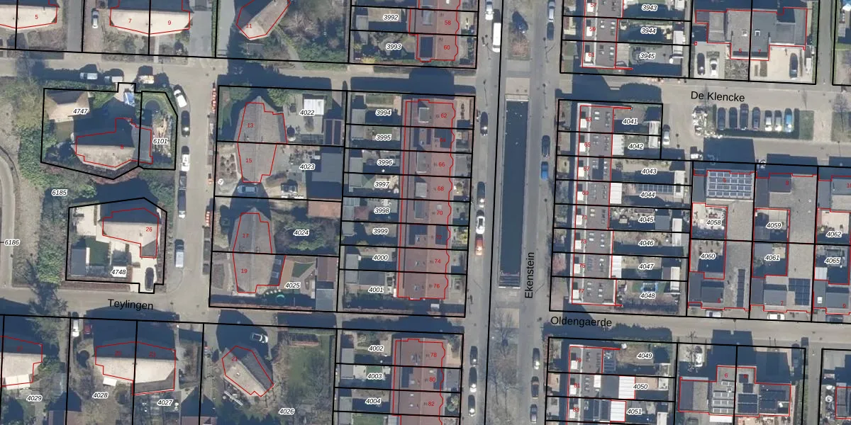 Gebruik de zoekbalk of klik op een perceel voor informatie over de adressen binnen dit perceel.