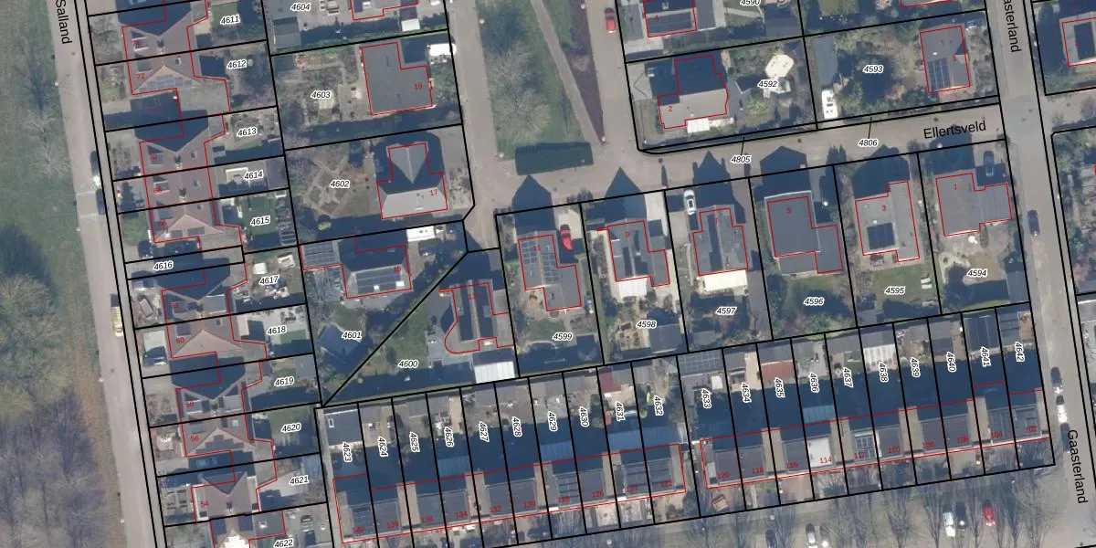 Het perceel waarop Ellertsveld 11 staat heeft een oppervlakte van 467 m². Dit is een groot perceel. De perceeloppervlakte wordt geregistreerd door het Kadaster. Gedetailleerde informatie over de maten van dit perceel kunt u vinden in het rapport Kadastrale kaart met maatvoering van Ellertsveld 11.