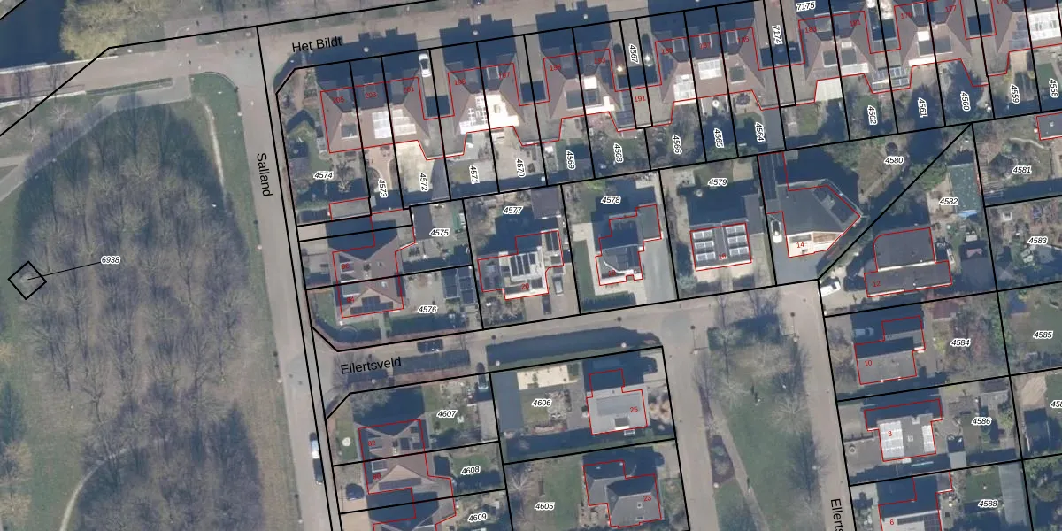 Het perceel waarop Ellertsveld 20 staat heeft een oppervlakte van 465 m². Dit is een groot perceel. De perceeloppervlakte wordt geregistreerd door het Kadaster. Gedetailleerde informatie over de maten van dit perceel kunt u vinden in het rapport Kadastrale kaart met maatvoering van Ellertsveld 20.