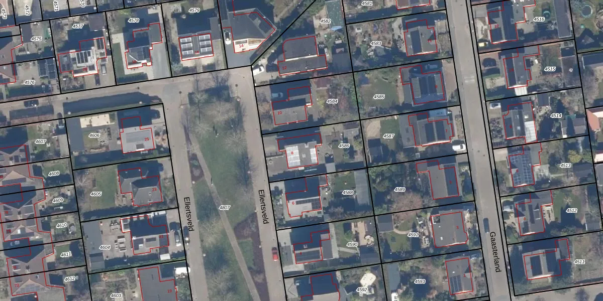 Het perceel waarop Ellertsveld 8 staat heeft een oppervlakte van 530 m². Dit is een groot perceel. De perceeloppervlakte wordt geregistreerd door het Kadaster. Gedetailleerde informatie over de maten van dit perceel kunt u vinden in het rapport Kadastrale kaart met maatvoering van Ellertsveld 8.