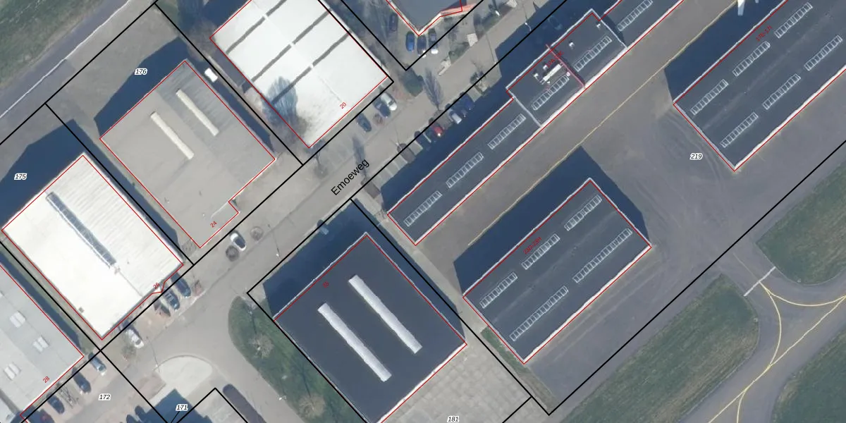 Het perceel waarop Emoeweg 23-C staat heeft een oppervlakte van 8614 m². Dit is een zeer groot perceel. De perceeloppervlakte wordt geregistreerd door het Kadaster. Gedetailleerde informatie over de maten van dit perceel kunt u vinden in het rapport Kadastrale kaart met maatvoering van Emoeweg 23-C.