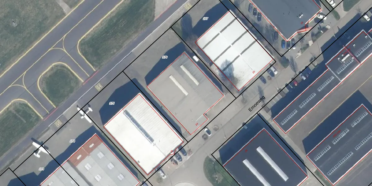 Emoeweg 24 is gelegen op kadastraal perceel LLS00B176. Deze kadastrale aanduiding is uniek en wordt gebruikt door het Kadaster om eigendomsrechten en andere zakelijke rechten vast te leggen. Het perceel maakt onderdeel uit van de kadastrale gemeente Lelystad.
