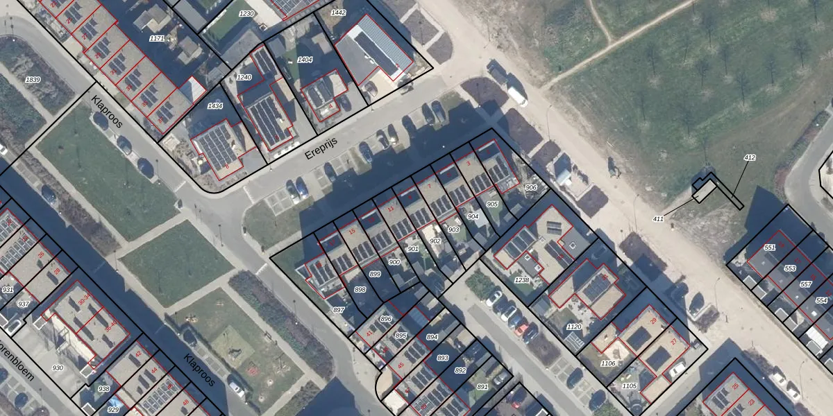 Het perceel waarop Ereprijs 9 staat heeft een oppervlakte van 144 m². Dit is een middelgroot perceel. De perceeloppervlakte wordt geregistreerd door het Kadaster. Gedetailleerde informatie over de maten van dit perceel kunt u vinden in het rapport Kadastrale kaart met maatvoering van Ereprijs 9.