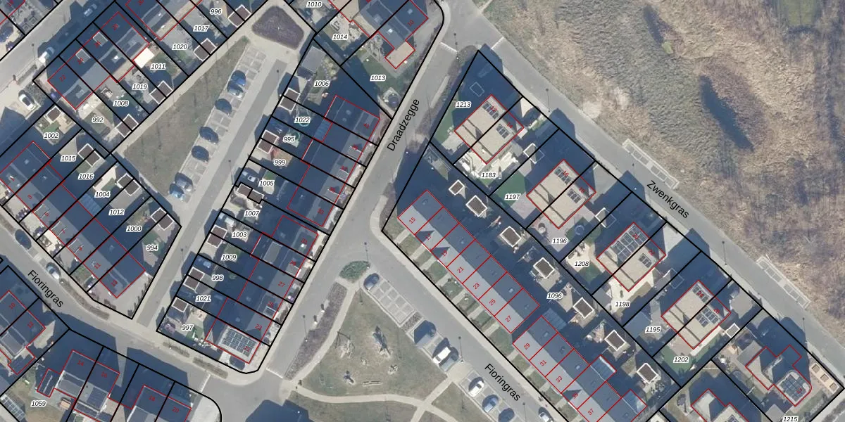 Het perceel waarop Fioringras 15 staat heeft een oppervlakte van 1945 m². Dit is een zeer groot perceel. De perceeloppervlakte wordt geregistreerd door het Kadaster. Gedetailleerde informatie over de maten van dit perceel kunt u vinden in het rapport Kadastrale kaart met maatvoering van Fioringras 15.