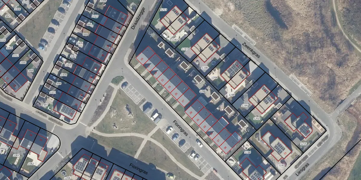 Het perceel waarop Fioringras 25 staat heeft een oppervlakte van 1945 m². Dit is een zeer groot perceel. De perceeloppervlakte wordt geregistreerd door het Kadaster. Gedetailleerde informatie over de maten van dit perceel kunt u vinden in het rapport Kadastrale kaart met maatvoering van Fioringras 25.