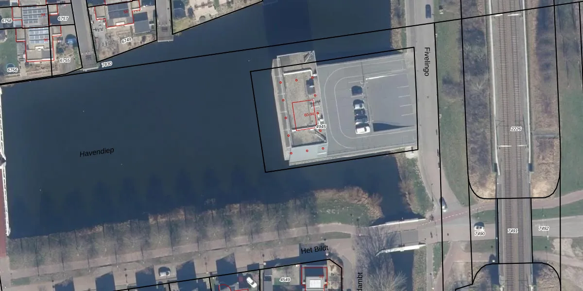 Het adres ligt op het perceel LLS00-O-4945, dat zich in de kadastrale gemeente Lelystad bevindt. Het perceel is 1923 m² groot. Dat is kleiner dan de gemiddelde perceeloppervlakte in Lelystad, dat op 2,1 ha ligt. De grootste perceeloppervlakte in de kadastrale gemeente is 78,50 km². De kleinste oppervlakte bedraagt 0 m². Op het perceel zijn 18 adressen aanwezig. De huidige grenzen van het perceel zijn digitaal in de Basisregistratie Kadaster (BRK) geregistreerd op 04-12-2001.