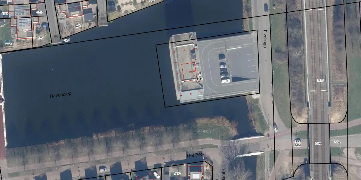 Het adres ligt op het perceel LLS00-O-4945, dat zich in de kadastrale gemeente Lelystad bevindt. Het perceel is 1923 m² groot. Dat is kleiner dan de gemiddelde perceeloppervlakte in Lelystad, dat op 2,1 ha ligt. De grootste perceeloppervlakte in de kadastrale gemeente is 78,50 km². De kleinste oppervlakte bedraagt 0 m². Op het perceel zijn 18 adressen aanwezig. De laatste wijziging in het de Basisregistratie Kadaster (BRK) was op 04-12-2001.