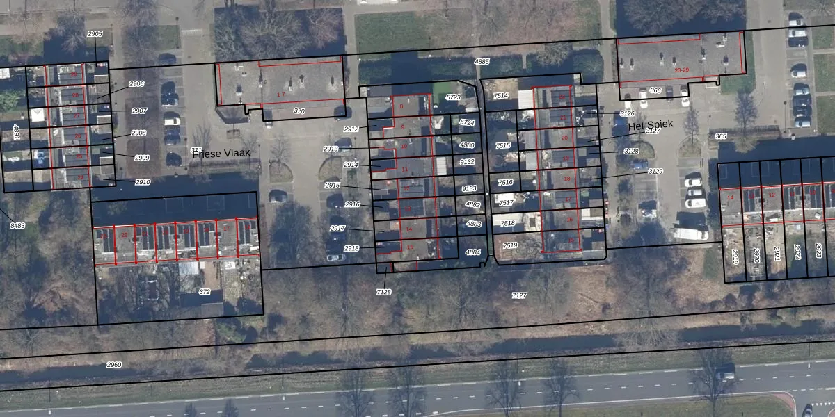 Gebruik de zoekbalk of klik op een perceel voor informatie over de adressen binnen dit perceel.