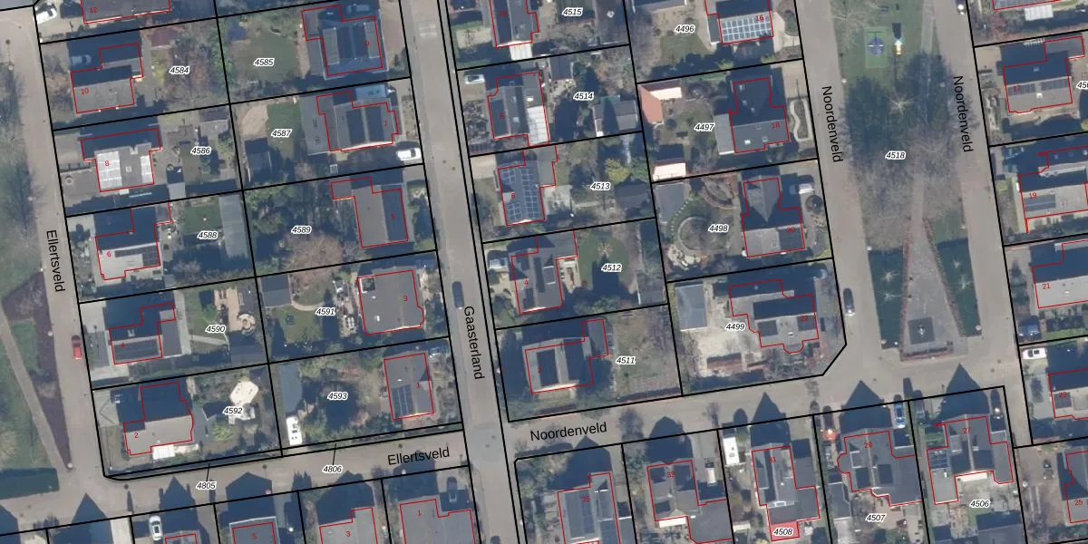 Het perceel waarop Gaasterland 4 staat heeft een oppervlakte van 519 m². Dit is een groot perceel. De perceeloppervlakte wordt geregistreerd door het Kadaster. Gedetailleerde informatie over de maten van dit perceel kunt u vinden in het rapport Kadastrale kaart met maatvoering van Gaasterland 4.