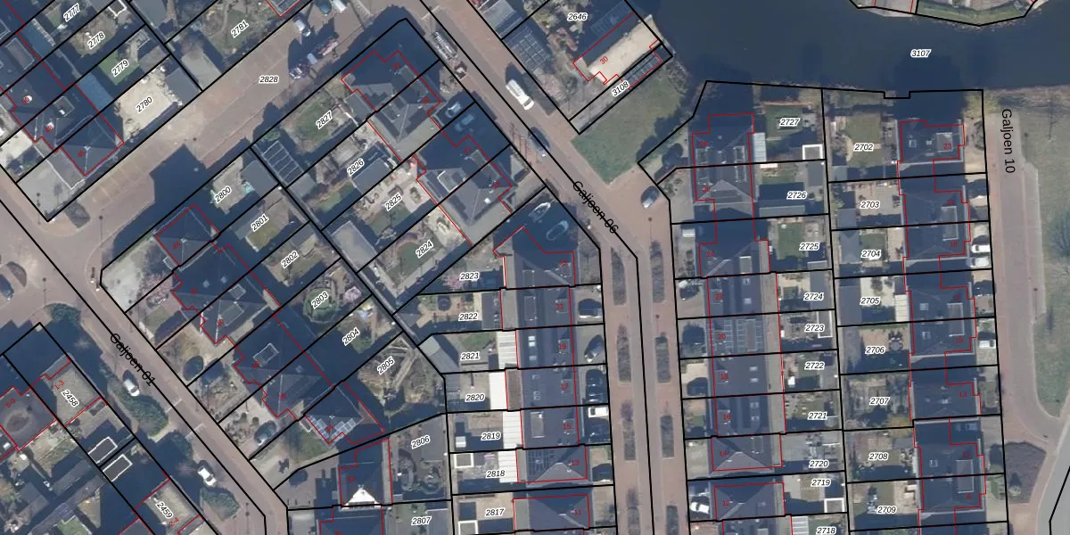 Het perceel waarop Galjoen 06 23 staat heeft een oppervlakte van 357 m². Dit is een groot perceel. De perceeloppervlakte wordt geregistreerd door het Kadaster. Gedetailleerde informatie over de maten van dit perceel kunt u vinden in het rapport Kadastrale kaart met maatvoering van Galjoen 06 23.