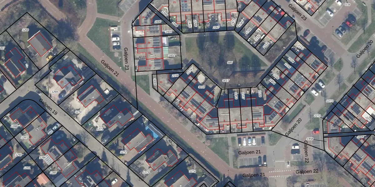 Galjoen 21 16 is gelegen op kadastraal perceel LLS00N3018. Deze kadastrale aanduiding is uniek en wordt gebruikt door het Kadaster om eigendomsrechten en andere zakelijke rechten vast te leggen. Het perceel maakt onderdeel uit van de kadastrale gemeente Lelystad.