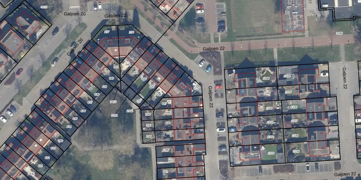 Galjoen 22 20 is gelegen op kadastraal perceel LLS00N275. Deze kadastrale aanduiding is uniek en wordt gebruikt door het Kadaster om eigendomsrechten en andere zakelijke rechten vast te leggen. Het perceel maakt onderdeel uit van de kadastrale gemeente Lelystad.