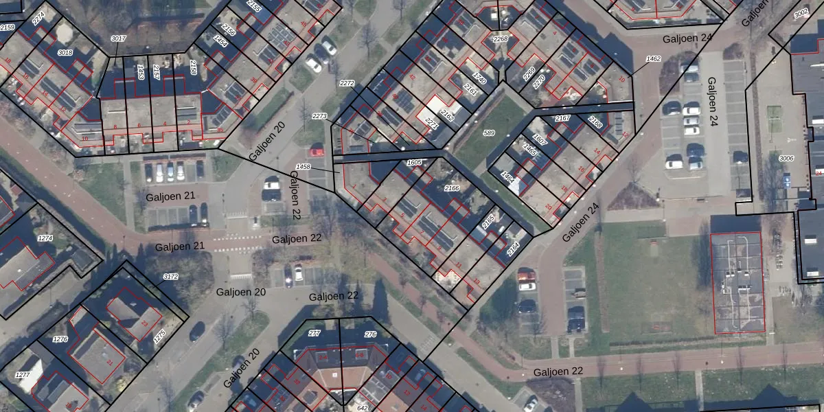 Het perceel waarop Galjoen 22 5 staat heeft een oppervlakte van 429 m². Dit is een groot perceel. De perceeloppervlakte wordt geregistreerd door het Kadaster. Gedetailleerde informatie over de maten van dit perceel kunt u vinden in het rapport Kadastrale kaart met maatvoering van Galjoen 22 5.