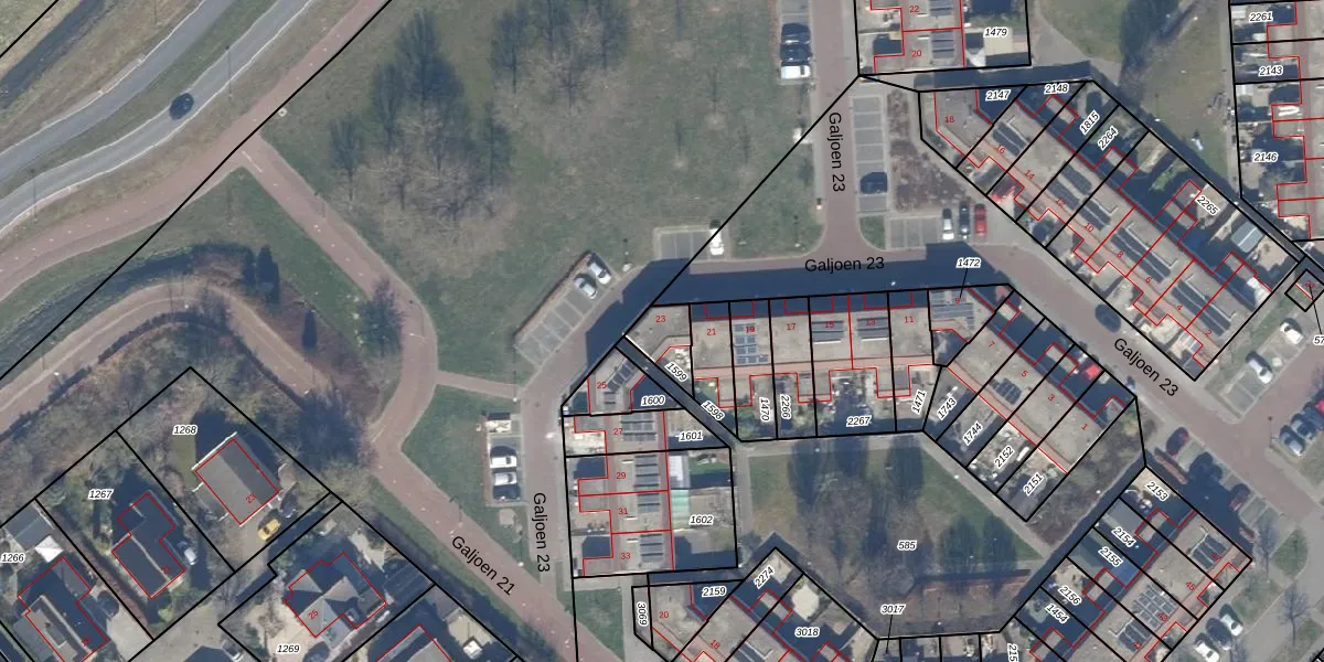 Galjoen 23 23 is gelegen op kadastraal perceel LLS00N1599. Deze kadastrale aanduiding is uniek en wordt gebruikt door het Kadaster om eigendomsrechten en andere zakelijke rechten vast te leggen. Het perceel maakt onderdeel uit van de kadastrale gemeente Lelystad.