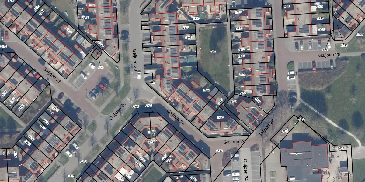 Het perceel waarop Galjoen 24 1 staat heeft een oppervlakte van 1028 m². Dit is een zeer groot perceel. De perceeloppervlakte wordt geregistreerd door het Kadaster. Gedetailleerde informatie over de maten van dit perceel kunt u vinden in het rapport Kadastrale kaart met maatvoering van Galjoen 24 1.