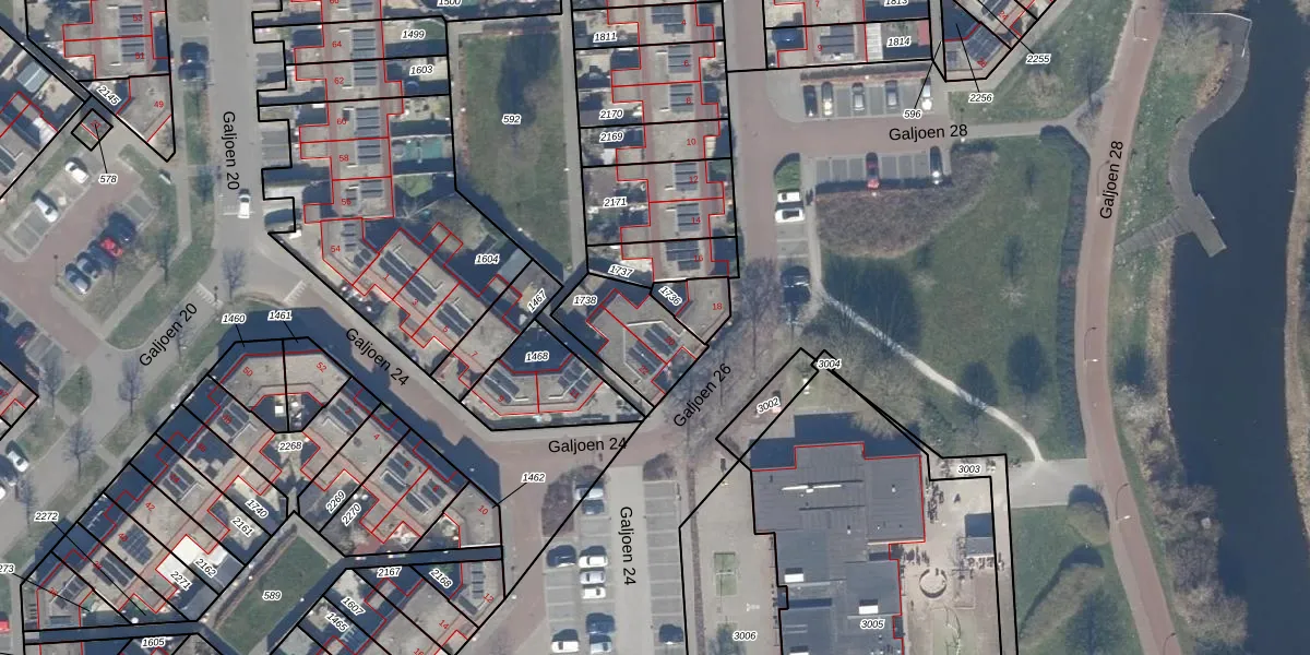 Galjoen 26 20 is gelegen op kadastraal perceel LLS00N1738. Deze kadastrale aanduiding is uniek en wordt gebruikt door het Kadaster om eigendomsrechten en andere zakelijke rechten vast te leggen. Het perceel maakt onderdeel uit van de kadastrale gemeente Lelystad.