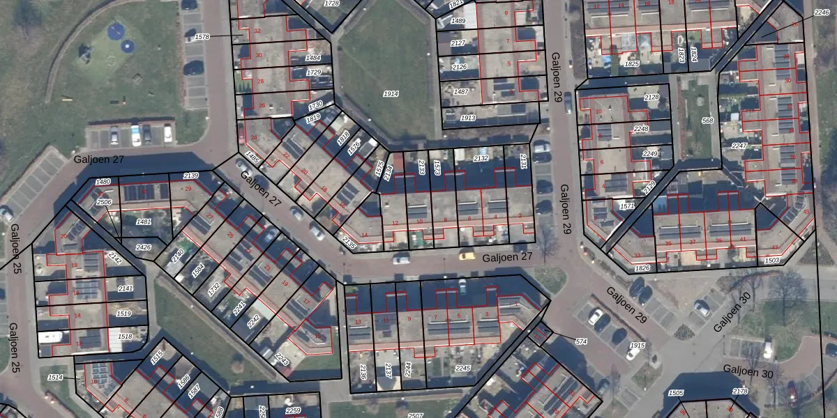 Het perceel waarop Galjoen 27 10 staat heeft een oppervlakte van 142 m². Dit is een middelgroot perceel. De perceeloppervlakte wordt geregistreerd door het Kadaster. Gedetailleerde informatie over de maten van dit perceel kunt u vinden in het rapport Kadastrale kaart met maatvoering van Galjoen 27 10.