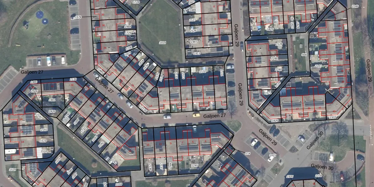Gebruik de zoekbalk of klik op een perceel voor informatie over de adressen binnen dit perceel.