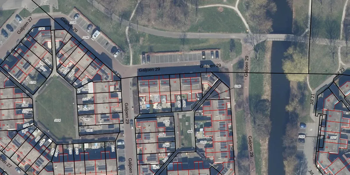 Galjoen 29 18 is gelegen op kadastraal perceel LLS00N1823. Deze kadastrale aanduiding is uniek en wordt gebruikt door het Kadaster om eigendomsrechten en andere zakelijke rechten vast te leggen. Het perceel maakt onderdeel uit van de kadastrale gemeente Lelystad.