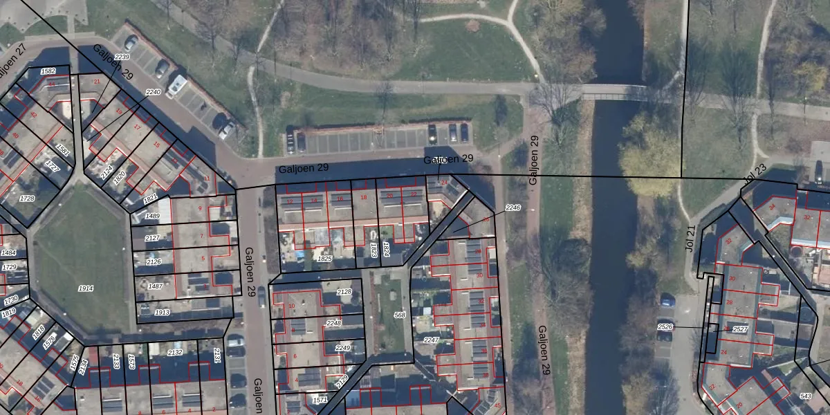 Galjoen 29 22 is gelegen op kadastraal perceel LLS00N1824. Deze kadastrale aanduiding is uniek en wordt gebruikt door het Kadaster om eigendomsrechten en andere zakelijke rechten vast te leggen. Het perceel maakt onderdeel uit van de kadastrale gemeente Lelystad.