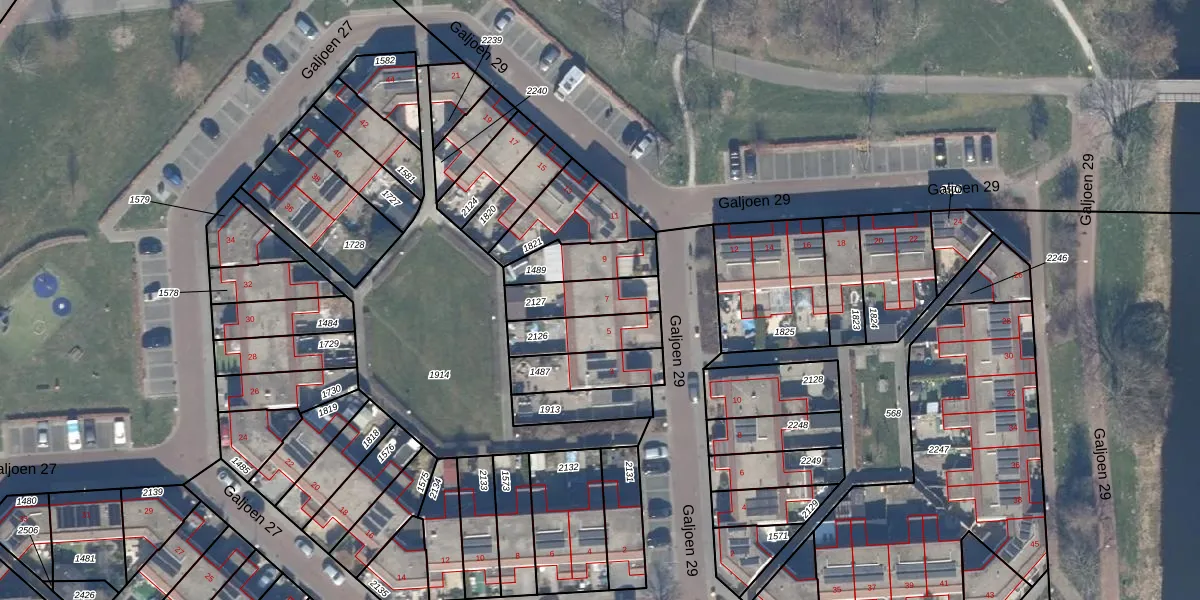 Het perceel waarop Galjoen 29 7 staat heeft een oppervlakte van 154 m². Dit is een middelgroot perceel. De perceeloppervlakte wordt geregistreerd door het Kadaster. Gedetailleerde informatie over de maten van dit perceel kunt u vinden in het rapport Kadastrale kaart met maatvoering van Galjoen 29 7.