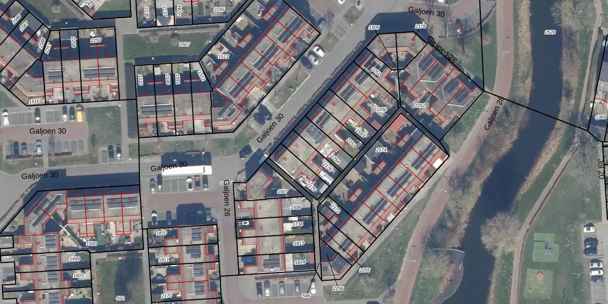 Galjoen 30 22 is gelegen op kadastraal perceel LLS00N2176. Deze kadastrale aanduiding is uniek en wordt gebruikt door het Kadaster om eigendomsrechten en andere zakelijke rechten vast te leggen. Het perceel maakt onderdeel uit van de kadastrale gemeente Lelystad.