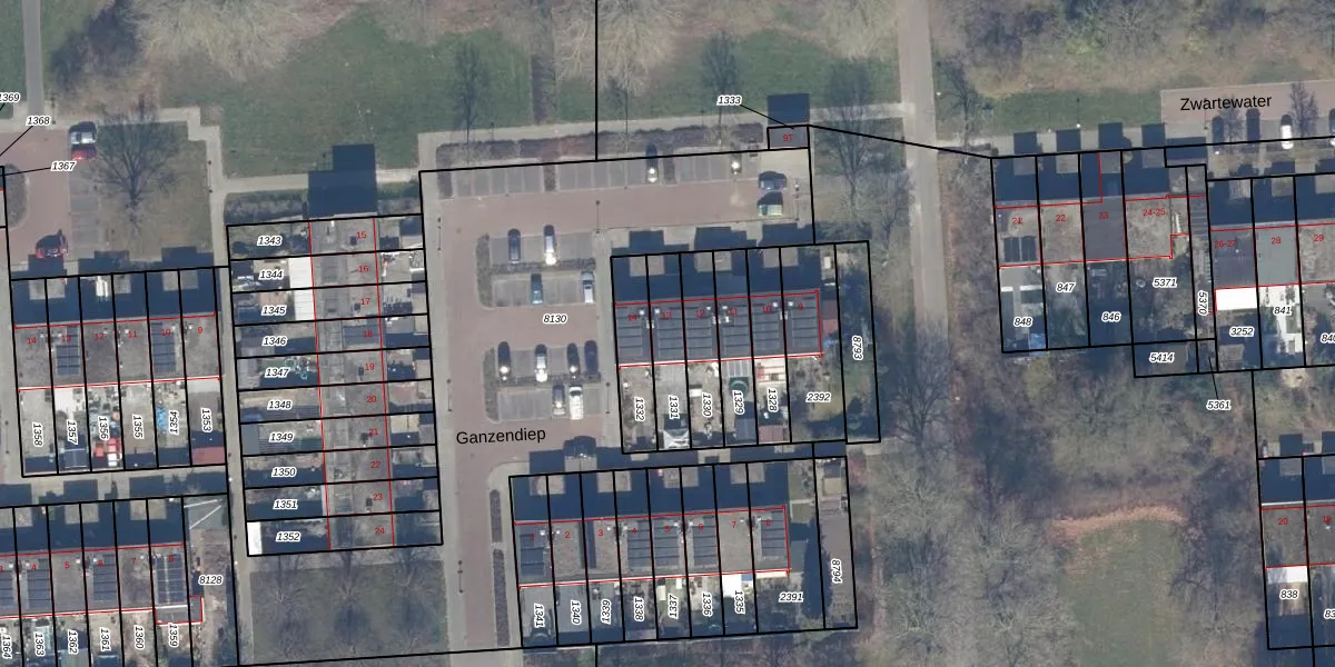 Het perceel waarop Ganzendiep 13 staat heeft een oppervlakte van 148 m². Dit is een middelgroot perceel. De perceeloppervlakte wordt geregistreerd door het Kadaster. Gedetailleerde informatie over de maten van dit perceel kunt u vinden in het rapport Kadastrale kaart met maatvoering van Ganzendiep 13.