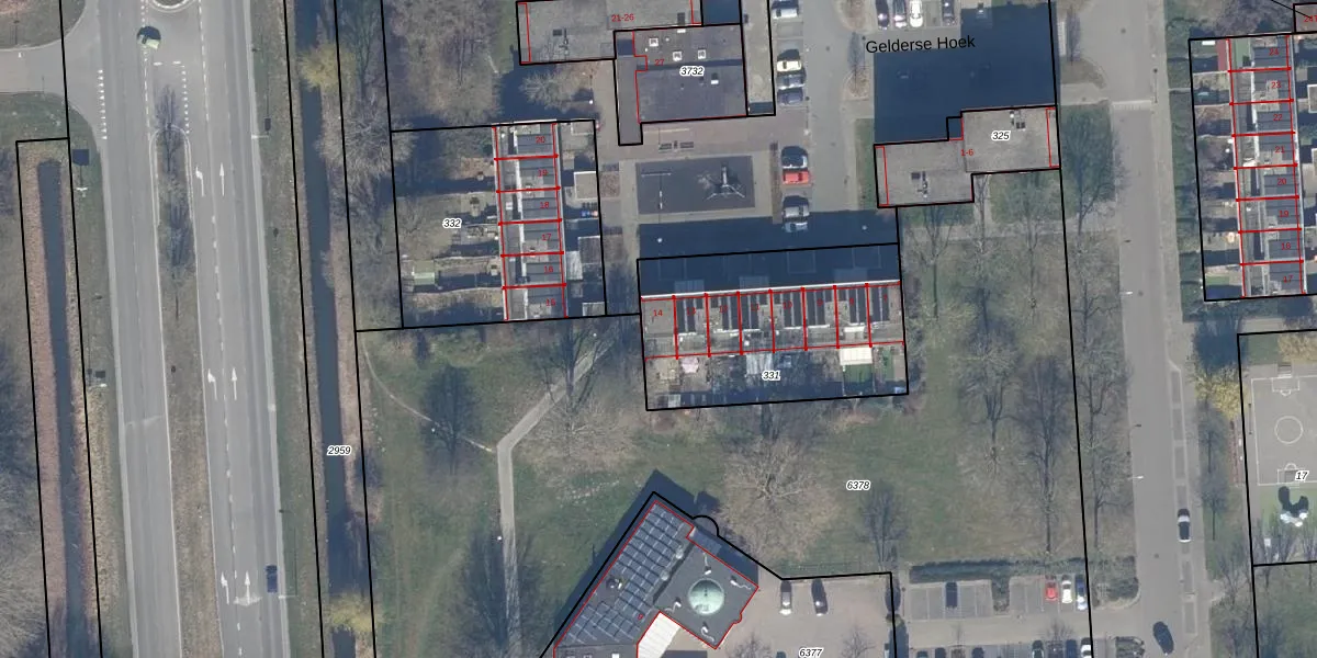 Gelderse Hoek 14 is gelegen op kadastraal perceel LLS00K331. Deze kadastrale aanduiding is uniek en wordt gebruikt door het Kadaster om eigendomsrechten en andere zakelijke rechten vast te leggen. Het perceel maakt onderdeel uit van de kadastrale gemeente Lelystad.
