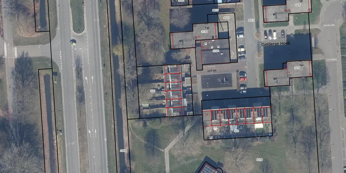 Gelderse Hoek 18 is gelegen op kadastraal perceel LLS00K332. Deze kadastrale aanduiding is uniek en wordt gebruikt door het Kadaster om eigendomsrechten en andere zakelijke rechten vast te leggen. Het perceel maakt onderdeel uit van de kadastrale gemeente Lelystad.