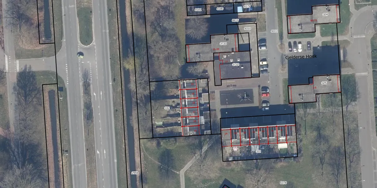 Gelderse Hoek 19 is gelegen op kadastraal perceel LLS00K332. Deze kadastrale aanduiding is uniek en wordt gebruikt door het Kadaster om eigendomsrechten en andere zakelijke rechten vast te leggen. Het perceel maakt onderdeel uit van de kadastrale gemeente Lelystad.