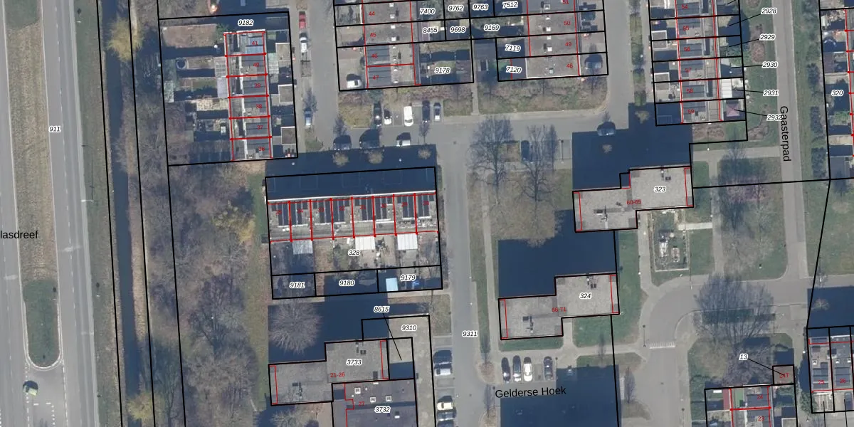 Het perceel waarop Gelderse Hoek 28 staat heeft een oppervlakte van 917 m². Dit is een groot perceel. De perceeloppervlakte wordt geregistreerd door het Kadaster. Gedetailleerde informatie over de maten van dit perceel kunt u vinden in het rapport Kadastrale kaart met maatvoering van Gelderse Hoek 28.