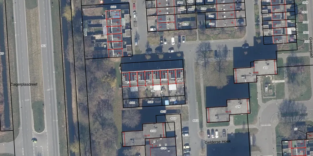 Het perceel waarop Gelderse Hoek 31 staat heeft een oppervlakte van 917 m². Dit is een groot perceel. De perceeloppervlakte wordt geregistreerd door het Kadaster. Gedetailleerde informatie over de maten van dit perceel kunt u vinden in het rapport Kadastrale kaart met maatvoering van Gelderse Hoek 31.