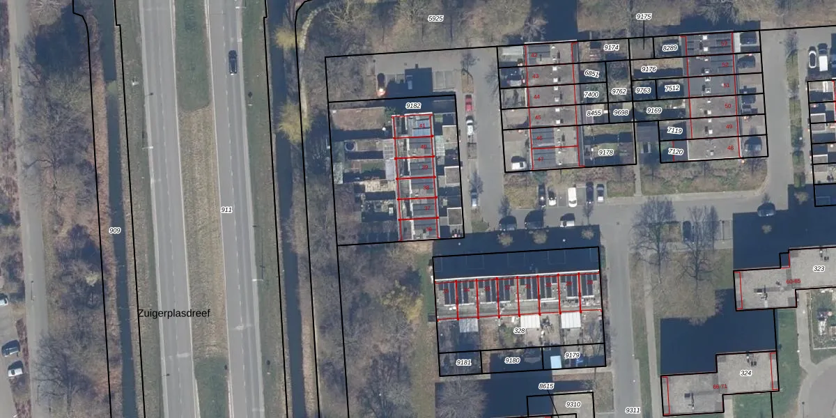 Het adres is gelegen op perceel 9182 in de sectie K en de kadastrale gemeente Lelystad. De kadastrale aanduiding is aldus LLS00-K-9182. Het perceel is kleiner dan gemiddeld in Lelystad. Het perceel is 1045 m² groot, terwijl het gemiddelde ligt op 2,1 ha. Het grootste perceel in de kadastrale gemeente is 78,50 km². Het kleinste perceel heeft een oppervlakte van 0 m². Er zijn 6 adressen aanwezig op het perceel. In de Basisregistratie Kadaster (BRK) werden de grenzen van het perceel geregistreerd op 19-06-2014.
