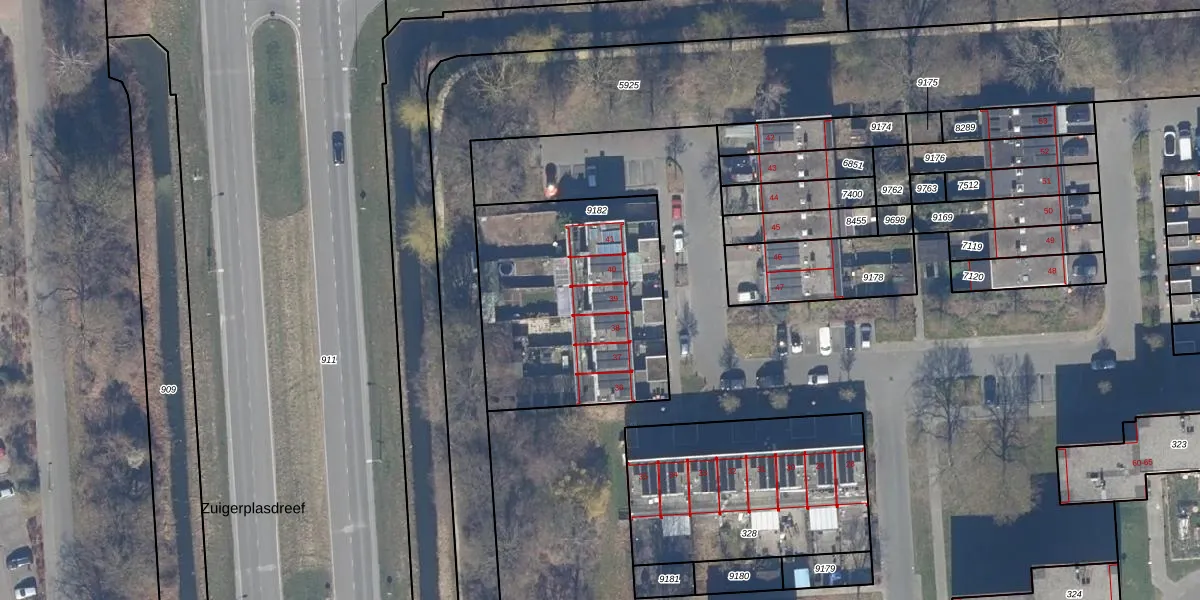 Het adres is gelegen op perceel 9182 in de sectie K en de kadastrale gemeente Lelystad. De kadastrale aanduiding is aldus LLS00-K-9182. De gemiddelde perceelgrootte in Lelystad is 2,1 ha. Dit perceel is kleiner: de perceeloppervlakte bedraagt 1045 m². Het grootste perceel in de kadastrale gemeente is 78,50 km². Het kleinste perceel heeft een oppervlakte van 0 m². Er zijn 6 adressen aanwezig op het perceel. In de Basisregistratie Kadaster (BRK) werden de grenzen van het perceel geregistreerd op 19-06-2014.