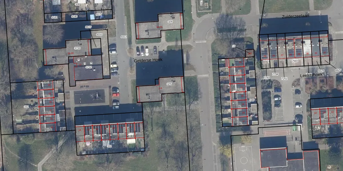 Gelderse Hoek 4 is gelegen op kadastraal perceel LLS00K325. Deze kadastrale aanduiding is uniek en wordt gebruikt door het Kadaster om eigendomsrechten en andere zakelijke rechten vast te leggen. Het perceel maakt onderdeel uit van de kadastrale gemeente Lelystad.