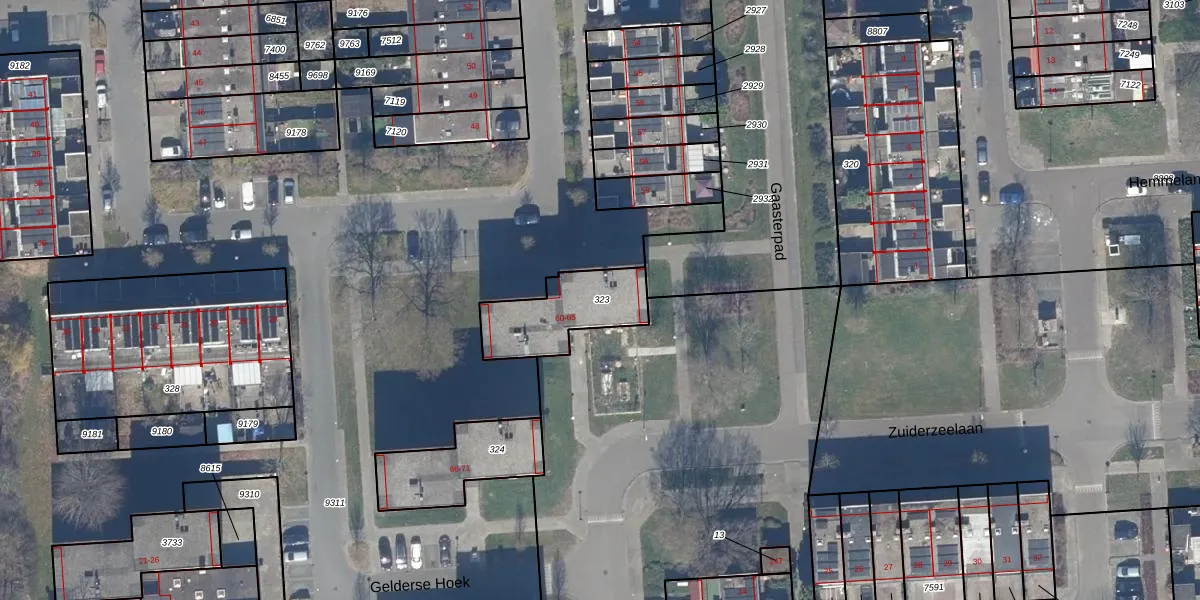 Gelderse Hoek 61 is gelegen op kadastraal perceel LLS00K323. Deze kadastrale aanduiding is uniek en wordt gebruikt door het Kadaster om eigendomsrechten en andere zakelijke rechten vast te leggen. Het perceel maakt onderdeel uit van de kadastrale gemeente Lelystad.