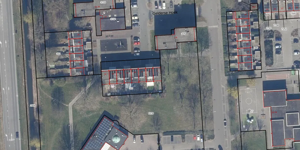 Gelderse Hoek 8 is gelegen op kadastraal perceel LLS00K331. Deze kadastrale aanduiding is uniek en wordt gebruikt door het Kadaster om eigendomsrechten en andere zakelijke rechten vast te leggen. Het perceel maakt onderdeel uit van de kadastrale gemeente Lelystad.