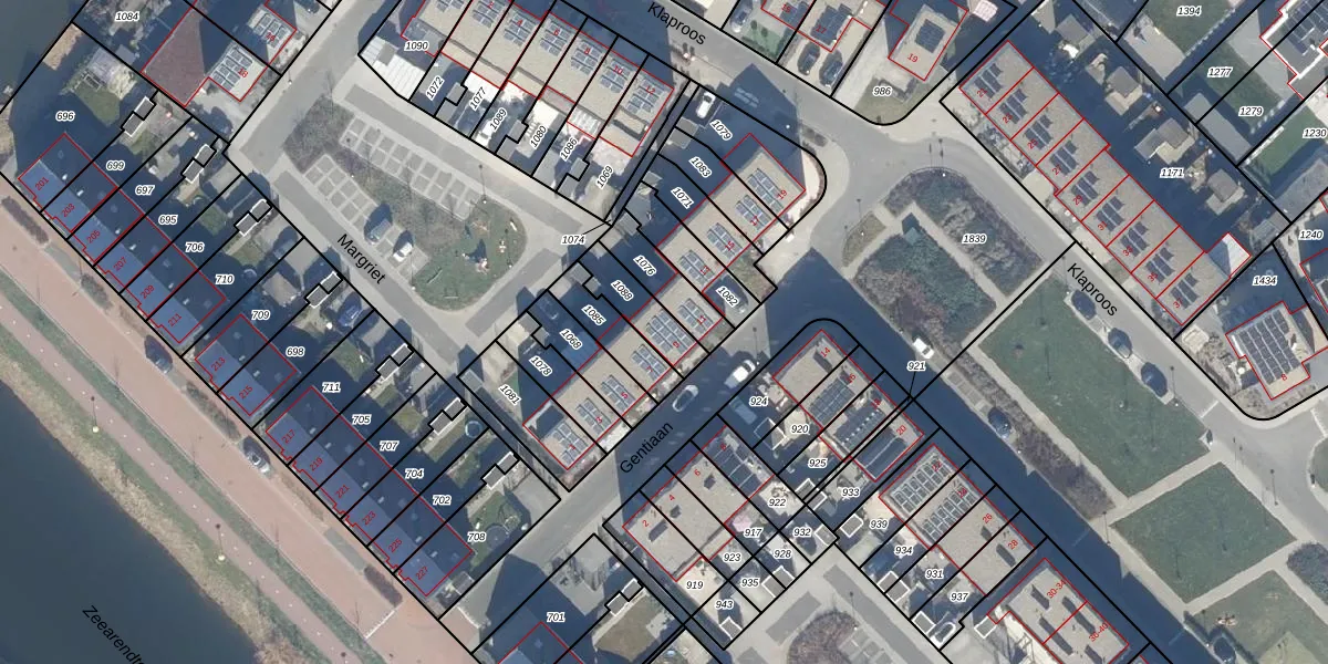 Gebruik de zoekbalk of klik op een perceel voor informatie over de adressen binnen dit perceel.