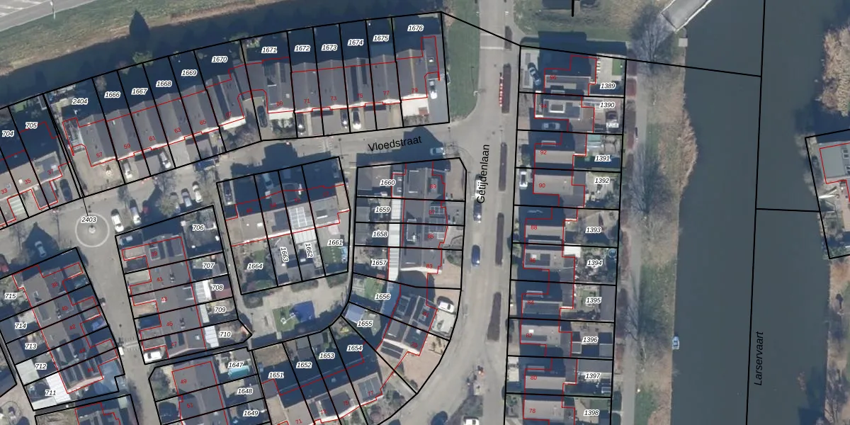Gebruik de zoekbalk of klik op een perceel voor informatie over de adressen binnen dit perceel.